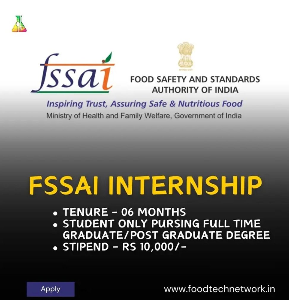 A stipend of Rs. 10,000/- (Rupees ten thousand only) for the entire internship period will be given to the deserving Interns on the recommendation of the Office/Division that they are attached with by the respective FSSAI (HQ)/Regional Offices/Laboratories.