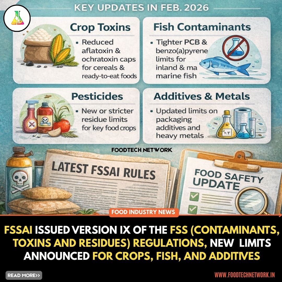 India’s food regulator has formally issued Version IX of the Food Safety and Standards (Contaminants, Toxins and Residues) Regulations, tightening limits on toxins, pesticide residues, heavy metals, and packaging-related additives across hundreds of food categories