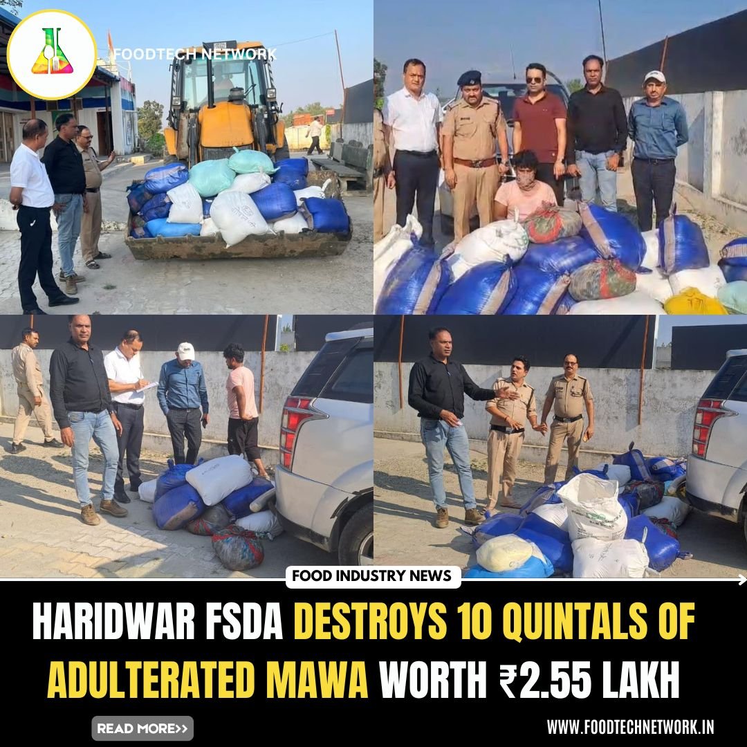 The Food Safety and Drug Administration (FSDA) team in Haridwar, Uttarakhand, carried out a swift enforcement action against food adulteration. During the inspection, officials seized and destroyed approximately 10 quintals of mawa (khoya) suspected to be unsafe for consumption.