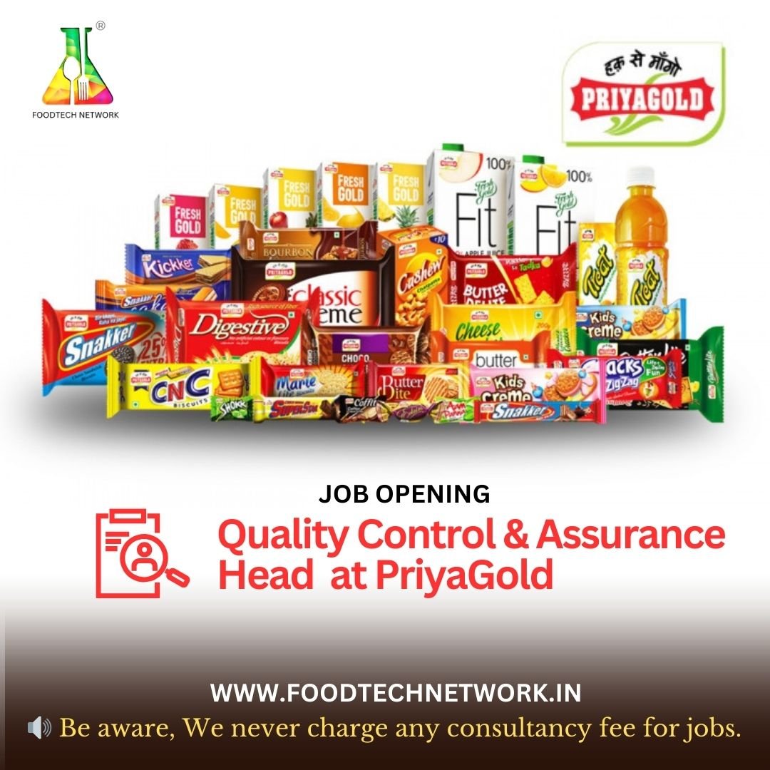 PriyaGold is looking for an experienced Quality Head to lead Quality Assurance & Food Safety operations for wafer and chocolate manufacturing.