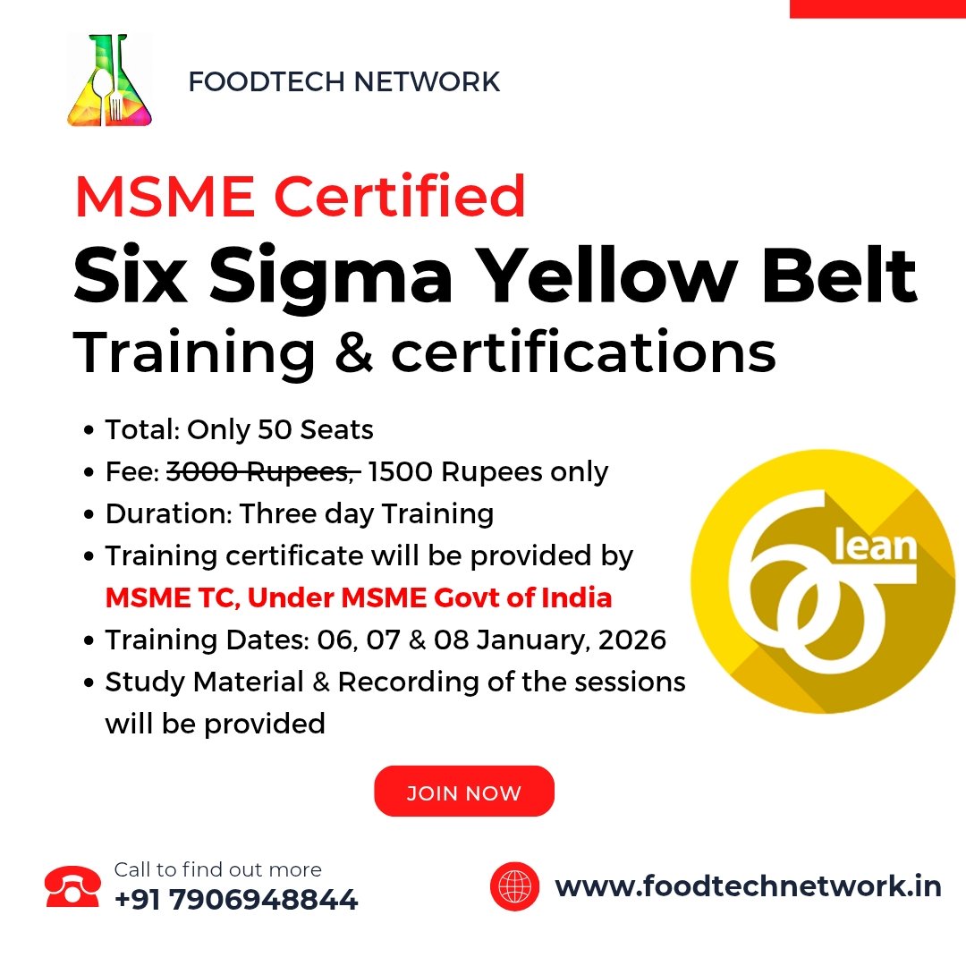 The Six Sigma Yellow Belt training provides a basic understanding of Six Sigma concepts, tools, and the DMAIC methodology. Participants learn how to identify process inefficiencies, reduce defects, and support continuous improvement initiatives. This program equips students and professionals with essential skills to contribute effectively to quality and improvement projects across manufacturing, service, and food industry sectors.