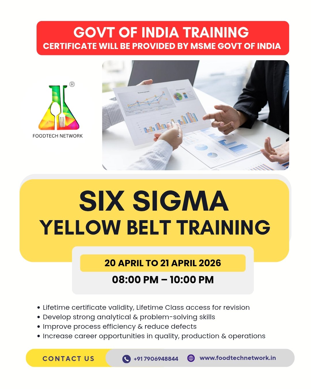 The Six Sigma Yellow Belt training provides a basic understanding of Six Sigma concepts, tools, and the DMAIC methodology. Participants learn how to identify process inefficiencies, reduce defects, and support continuous improvement initiatives. This program equips students and professionals with essential skills to contribute effectively to quality and improvement projects across manufacturing, service, and food industry sectors.